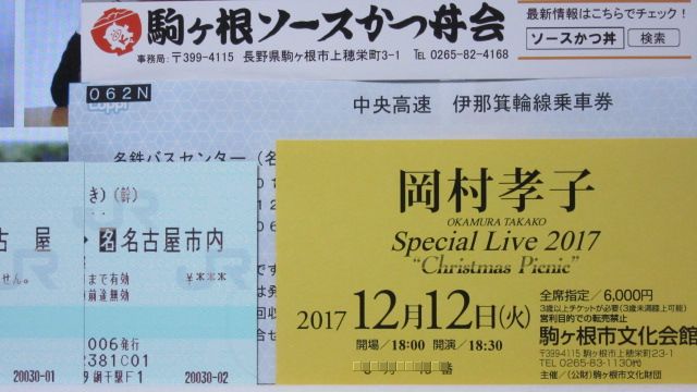 岡村孝子様 明日貴女に逢いに行きます ❤ 20171211 0 CM 寒い季節が苦手な孝子さん、この冬一番の寒波がやって来ました。今までライブといえば何かが起きると覚悟はしていましたが、ここまでスゴイとは想像していませんでした。根が単純なものですから、孝子さんから直々のお誘いだと勝手に解釈しました。明日は5時起きで移動します。何が起きるかわからないもので、そうします。 今回は、駒ヶ根と名古屋の2本のライブツアーに参加し、その中日は駒ヶ岳登山と岡崎の散策と洒落込むつもりです。でも寒さの中の行動で風邪でも引いて、名古屋当日はどこかで熱を出しているのかな。 帰ってきたら数日で、大阪サンケイブリーゼです。孝子さんに出逢ってChristmas Picnic の連チャンは初めてです。また明日の駒ヶ根は、ほかの2会場とは別の楽しみもあります。今晩は眠れるかな、明日は寝過ごさないか、、、。 孝子さん、風邪など召されませんようにお祈りしています。 元気な姿でお逢いできる事を楽しみにしています ❤ ❤ ❤ PR
