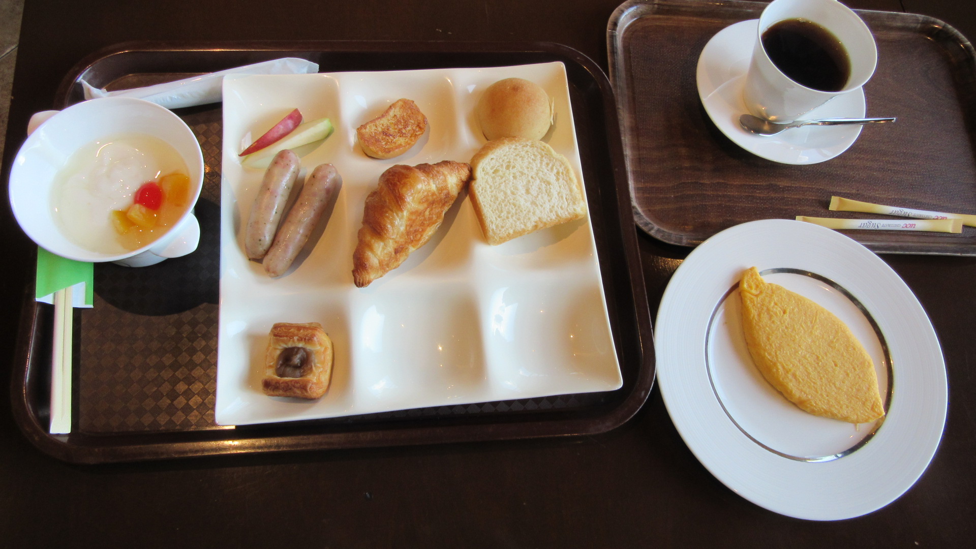 | 美味しい空気を浴び、朝食を頂く。『もう一つの期待』は的中、が『主人公』不在。ロビーの水が美味です。 |