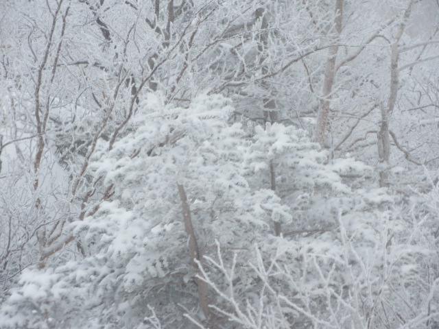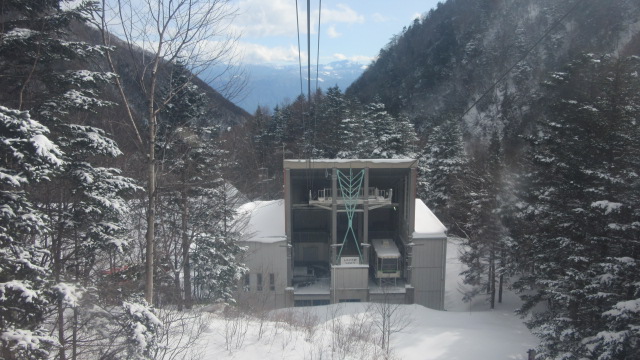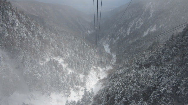 | 高速のロープウェー内は外来語の世界。眼下は氷点下の静寂と白一面の世界。眼下にカモシカが(^_^)v |