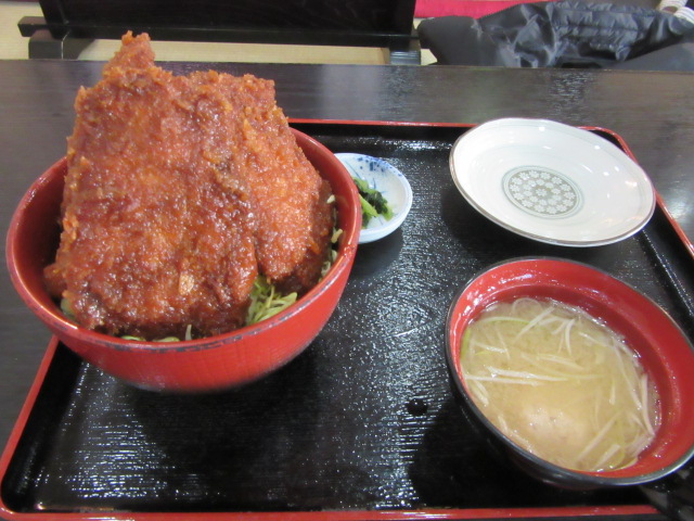 | 寒くて直ぐ退散。バスなどを乗り継ぎ、次の目的地『明治亭』。お約束のソースカツ丼。馬刺しの方が美味。 |