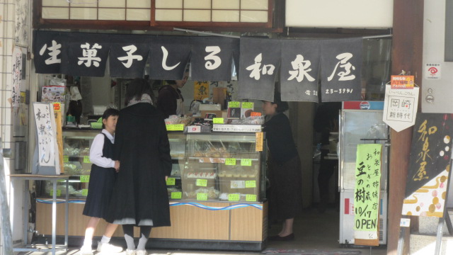 | 孝子さんが里帰りの際に寄られた和泉屋さん。先日食べられたお団子を頂く。女将さんとしばし談笑。 |