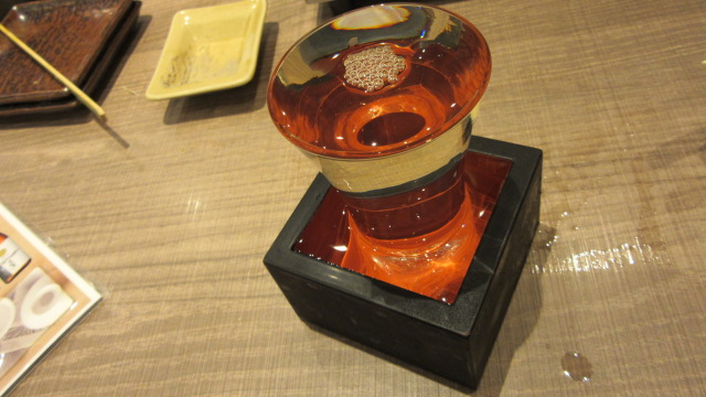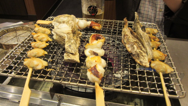 | 『お宝』もゲットし雨の中の『出待ち』も済ませ、高松の繁華街瓦町の居酒屋で孝子さん談義。 まずは地酒で喉を潤します。 ココまでの車中もずっと話していたのに、話題は尽きず。 あまりに夢中になりすぎ、コンロの海鮮などを焦がしてしまいました。 |