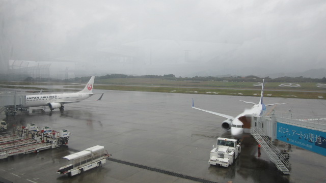 | ライブ会場のある三木町までの途中の高松空港へ寄り道です。 後でわかったことですが、孝子さん達一行もここを利用されたようです。 どこの空港正面玄関も似た風景ですね。 東京方面からだと1時間で来られるなんて、信じられない(^_^;) 今住んでる所って、『陸の孤島』??? |