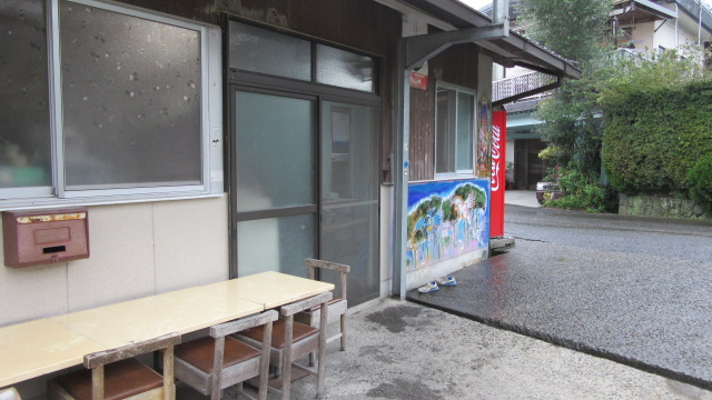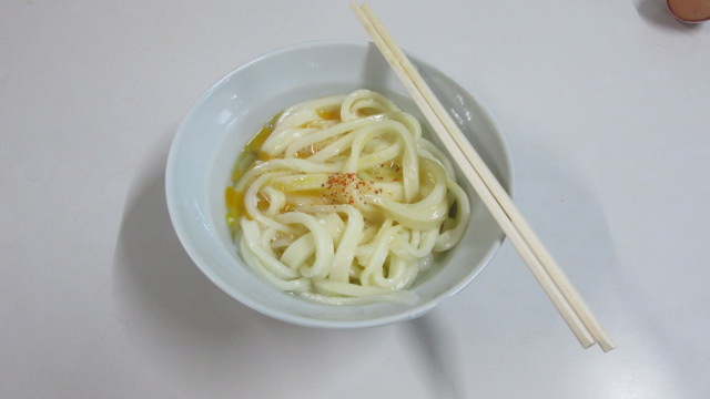 | 途中の琴電の駅で、今まさに上り下り出発の電車に巡り逢えました。 また本日二軒目のうどん店『三嶋製麺所』は山の中。 カーナビセットしていても、現地到着数分前には、本当にココ???と信じられない道を誘導されました(^_^)v 車がやっと一台が通れる山道を数分、看板も暖簾もない古びた建物の前に二台の車が停まっていました。 もしやココでは?!と車を道に仮駐車し、玄関から中を見ると数人の人がいた。 メニューは『うどん』のみ。製麺所の一角を開放したモノです。 作業場との境のカウンターから『玉数』と『温かいか冷たい』かを告げ、10席足らずの空き席付く。 トッピングは生卵(30円)のみで、支払いも後払いです。 讃岐うどんの原点、コシのある『素のうどん』が味わえます。 これで170円です(^^)/~~~ |