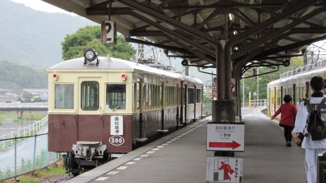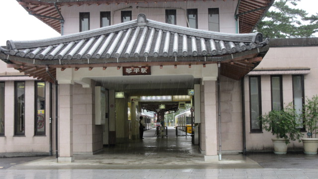 | 雨が降ってなかったら琴電の『乗り鉄』か『撮り鉄』を予定していたのですが、結局琴平駅でパチリ。 雨降りは何が起こるかわかりません。先を急ぎます。 |