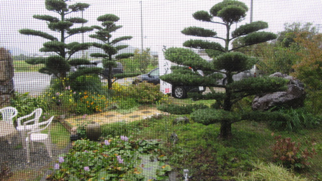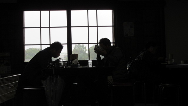 | 今回の『絵になる』一コマです。最近このような縁取りのアングルを気に入るようになりました(^_^) 外は稲の刈り取りが終わった田圃風景が広がっていました。 |