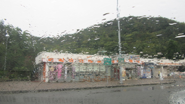 | 興奮冷めぬまま観音寺にある『湯屋 琴弾廻廊』へ移動。この時のカーナビ設定ミスで地道を延々2時間。 その上変な路地や行き止まりの堤防、軽四でも脱輪しそうな途中でカーブした踏切走行などを経て、 何とか昼前に到着したときにはグッタリでした。 『珍道中』の言葉ピッタリのひととき。 でも台本無しの旅もまた楽し、いやご迷惑だったかも(^_^;) 雨の降りしきる露天温泉に浸かり二日間の疲れとアルコールを落とし、 瀬戸の海が霞んでいる風景を肴に、ノンビリと食事をしました。 |