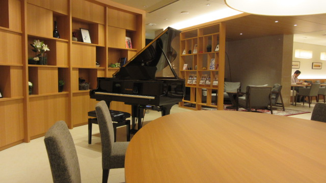 | 道中迷ったファストキャビン。朝風呂と、ロビー前の広間でしばしの朝食。長い一日になりそうな予感。 |